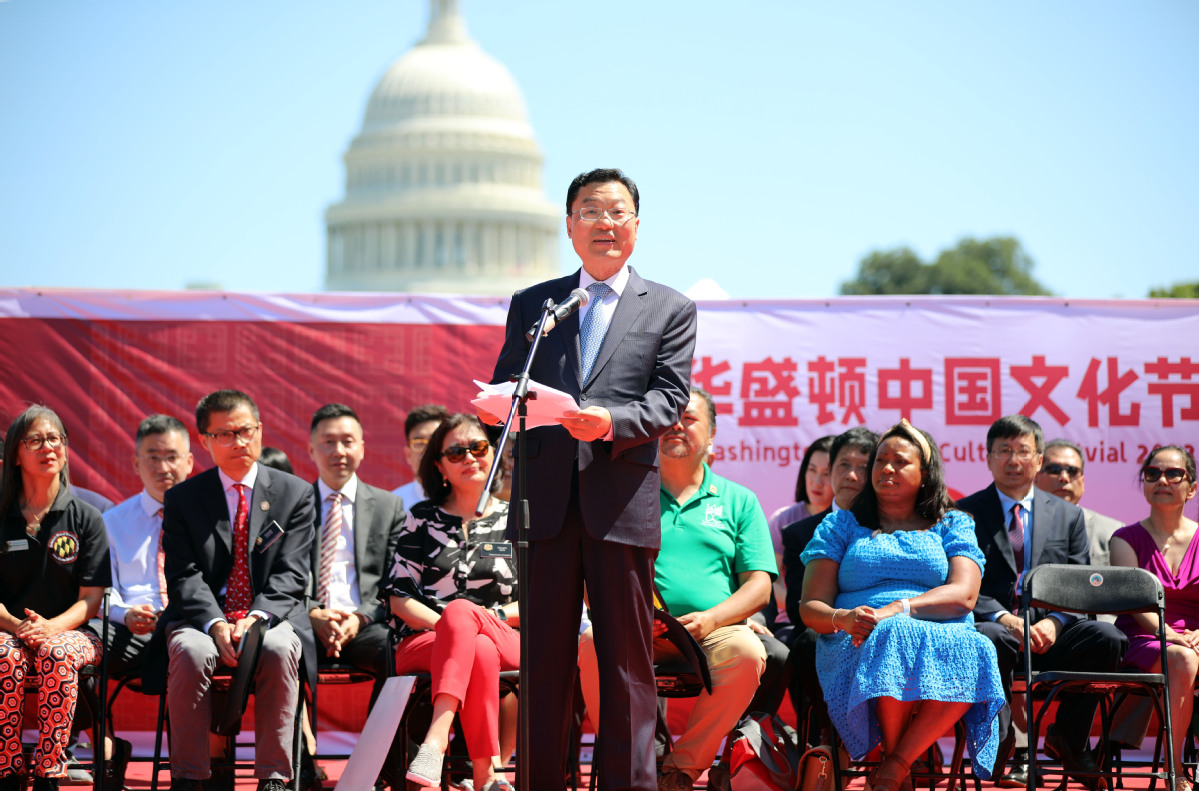 Chinese Ambassador to the US Xie Feng speaks at the 21st Washington Chinese Cultural Festival on Saturday in Washington. Photo by Zhao Huanxin/China Daily