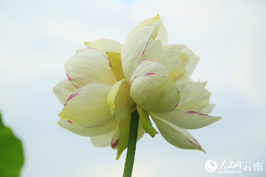 Photo shows a twin lotus flower of "Xiaosajin," a variety also known as small versicolor lotus flower, at the Puzhehei scenic spot in Qiubei county, southwest China's Yunnan Province. (Photo/Li Haolan)