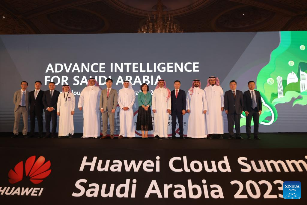 People attend the Huawei Cloud Summit Saudi Arabia 2023 in Riyadh, Saudi Arabia, on Sept. 4, 2023. The Chinese tech giant Huawei announced on Monday the opening of a cloud data center in Riyadh, as part of its efforts to expand its online service offerings in the Middle East. (Xinhua/Wang Haizhou)