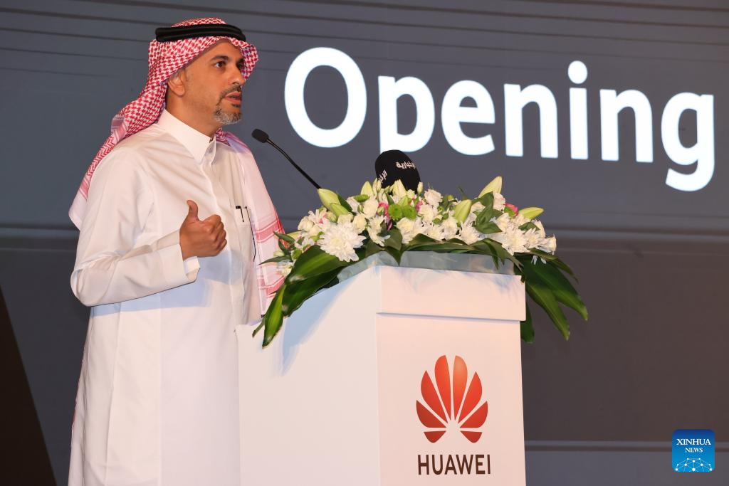 Haitham bin Abdul Rahman Al-Ohali, Saudi Vice Minister of Communications and Information Technology, speaks at the Huawei Cloud Summit Saudi Arabia 2023 in Riyadh, Saudi Arabia, on Sept. 4, 2023. The Chinese tech giant Huawei announced on Monday the opening of a cloud data center in Riyadh, as part of its efforts to expand its online service offerings in the Middle East. (Xinhua/Wang Haizhou)