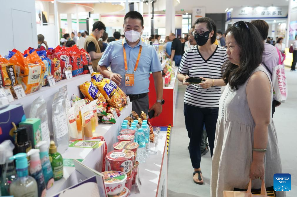 People visit the 2023 China International Fair for Trade in Services (CIFTIS) at China National Convention Center in Beijing, capital of China, Sept. 4, 2023. Themed "Opening-up leads development, cooperation delivers the future," the 2023 CIFTIS is held in Beijing from Sept. 2 to 6. (Xinhua/Wu Wei)