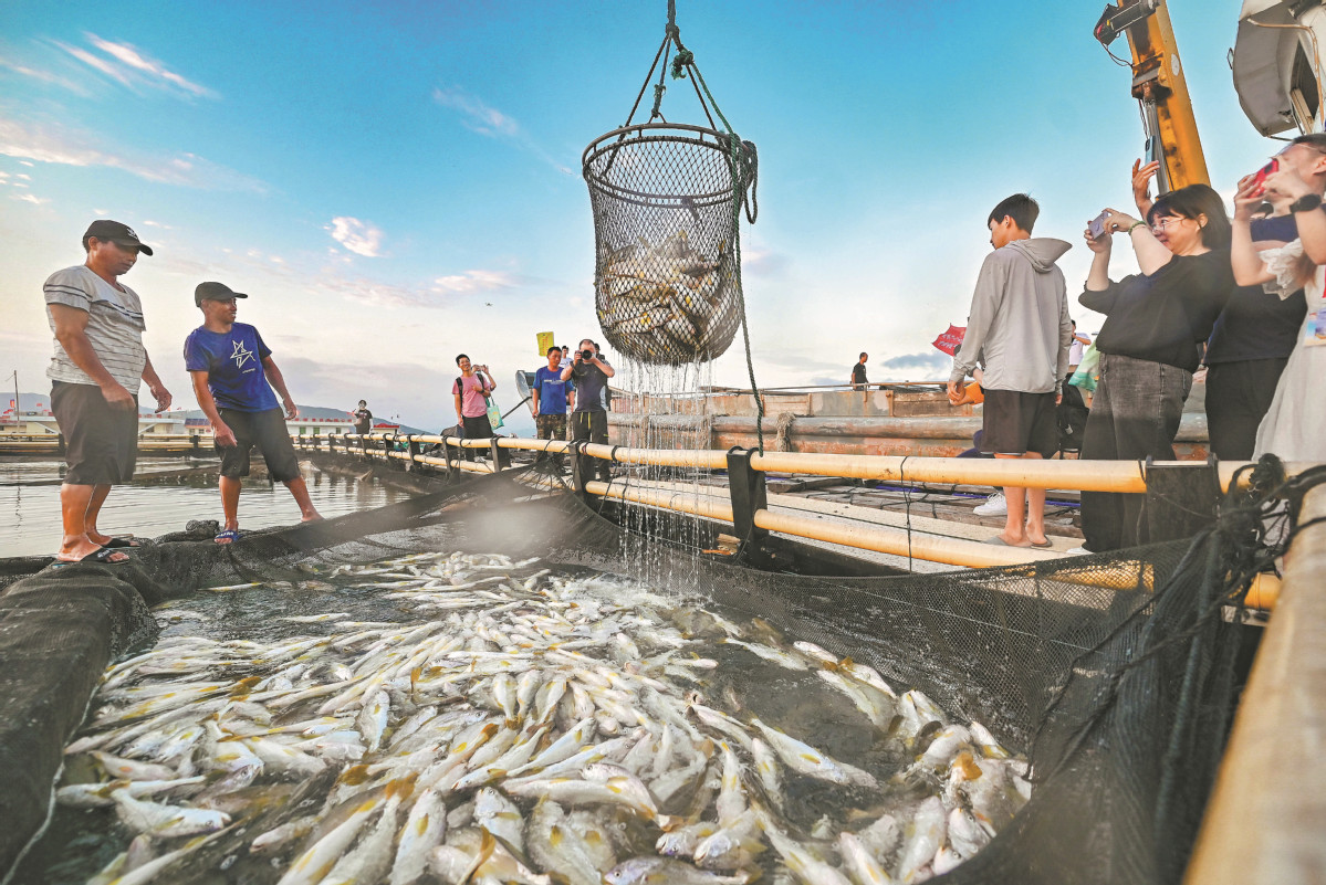 The coast of East China's Fujian province boasts abundant marine resources and is known for its vigorous development of offshore aquaculture. On the eve of the 6th Chinese Farmers' Harvest Festival, which falls on Sept 23, the province's offshore aquaculture bases in Fuzhou, Ningde, Putian and other coastal cities will welcome the harvest season.