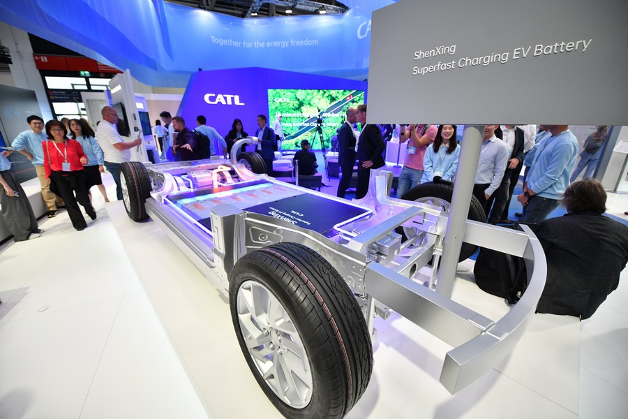 Before the official opening of the IAA MOBILITY, carmakers and suppliers, half of which came from outside Germany, showcased their latest innovations at dozens of press conferences on Monday. China's EV battery maker Contemporary Amperex Technology Co., Ltd. (CATL) presented a new lithium iron phosphate (LFP) battery named "Shenxing," which can power 400 km of driving range with a 10-minute charge.
