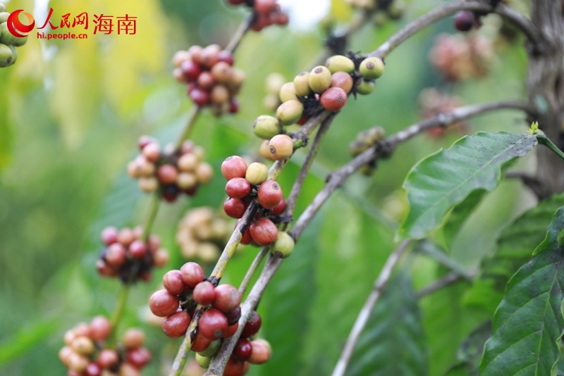 Photo shows ripe coffee beans at a coffee plantation of Hainan State Farms Tropical Products Industry Group Co., Ltd. (People's Daily Online/Meng Fansheng)