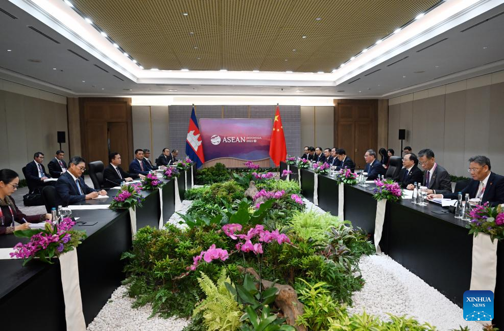 JAKARTA, Sept. 6 (Xinhua) -- Chinese Premier Li Qiang met here Wednesday with Cambodia's new Prime Minister Hun Manet, saying that bilateral ties have withstood changes in the international landscape, and remained rock-solid and unbreakable, setting an example for a new type of international relations.