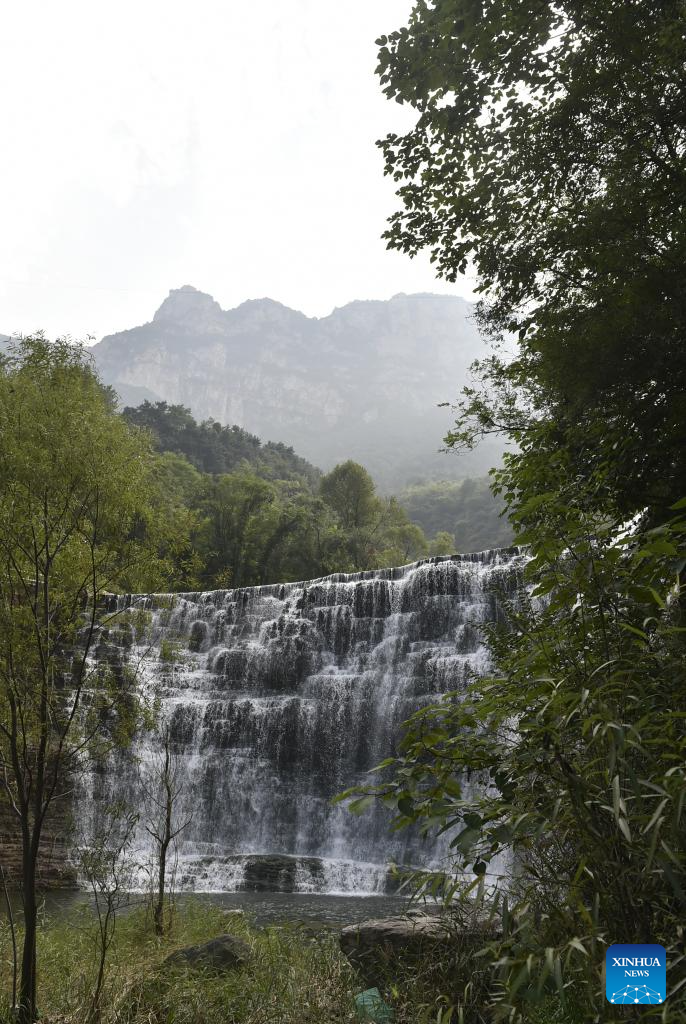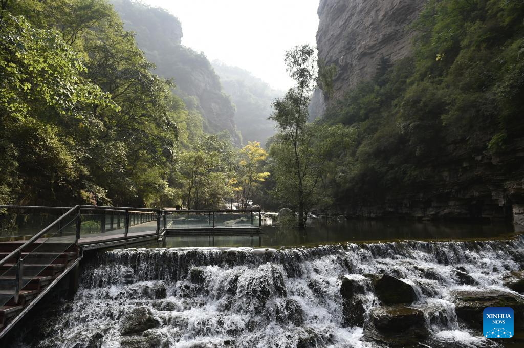 This photo taken on Sept. 6, 2023 shows the scenery of the Taihang Grand Canyon in Linzhou City, central China's Henan Province. The Taihang Grand Canyon scenic spot, covering a total area of about 89 square kilometers, features lucid waters and lush mountains. (Xinhua/Lu Peng)