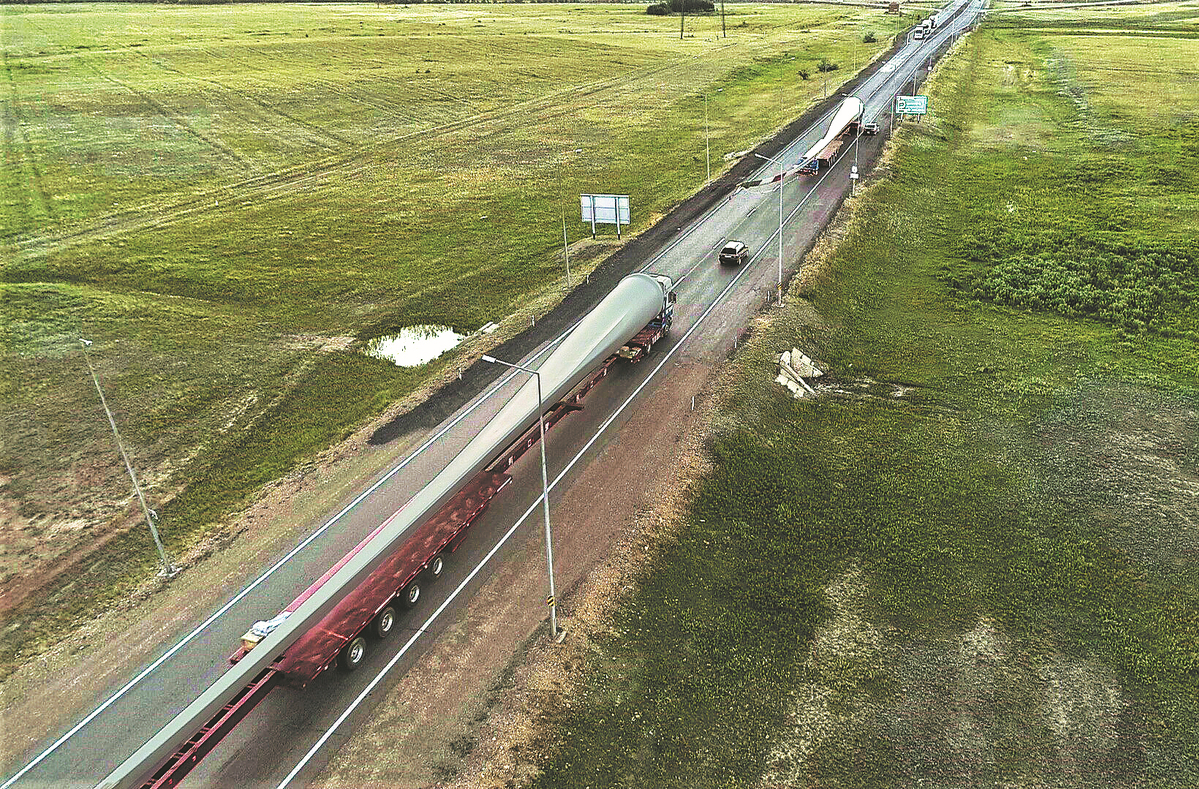 Vehicles carrying wind turbine blades made in China head toward wind farms in Kazakhstan. [Photo/Xinhua]