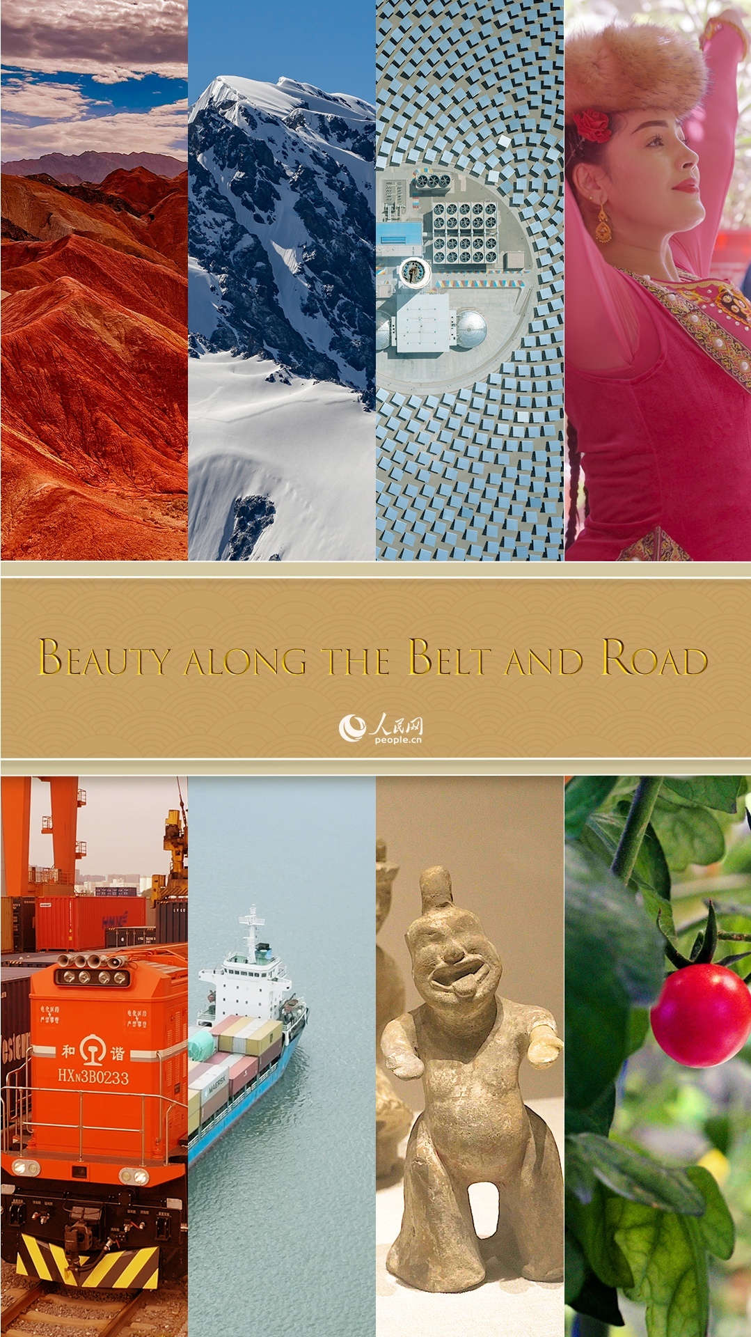 From bustling docks to the China-Europe Railway Express, often called the "steel camel fleet"; from vivid pottery figurines to vegetables cultivated in smart greenhouses; from the grand Danxia landscapes to the captivating music and dances of the Twelve Muqam – join us in experiencing the unmatched splendor along the Belt and Road.