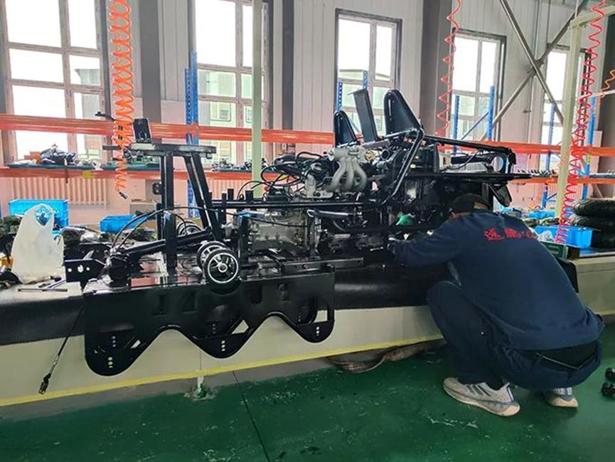 Fu Chunsheng provides hands-on guidance in the workshop during motorcycle production. (Photo provided to People’s Daily Online)