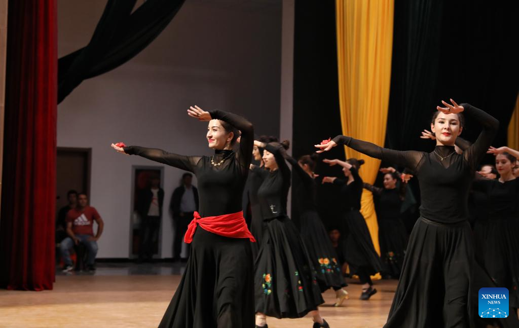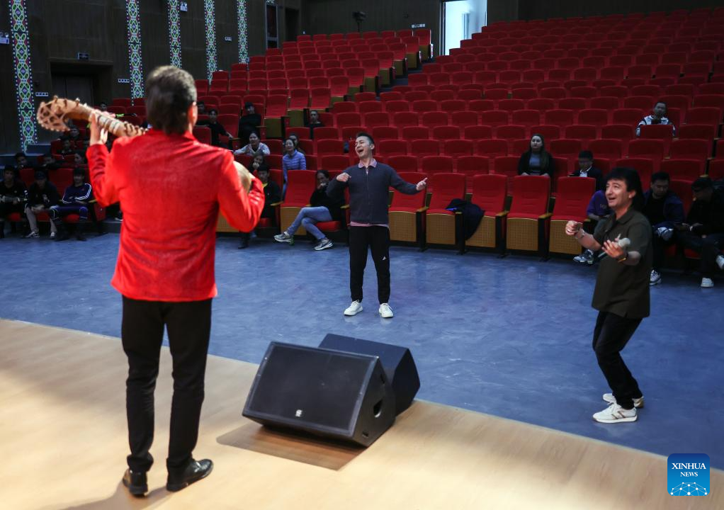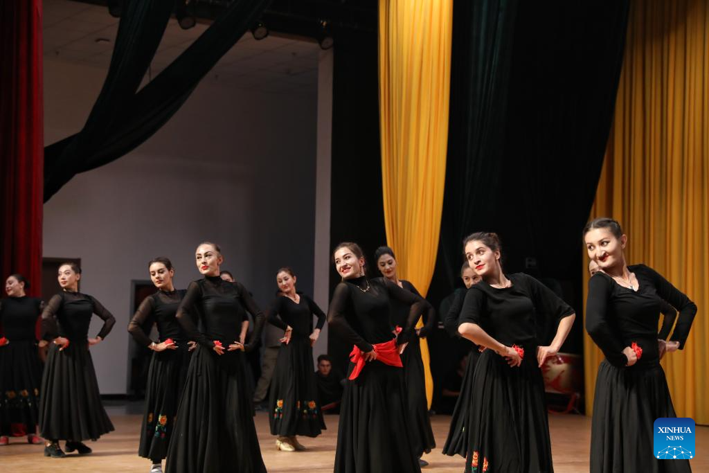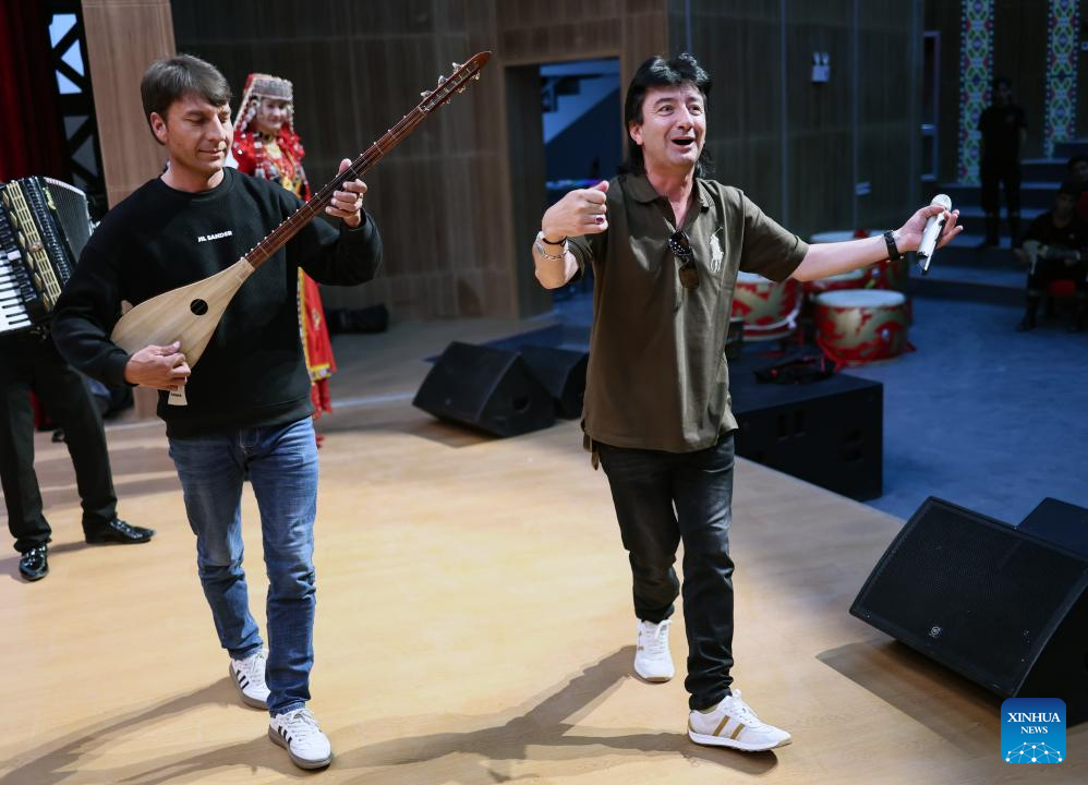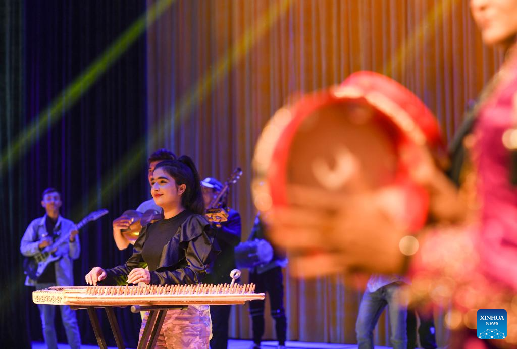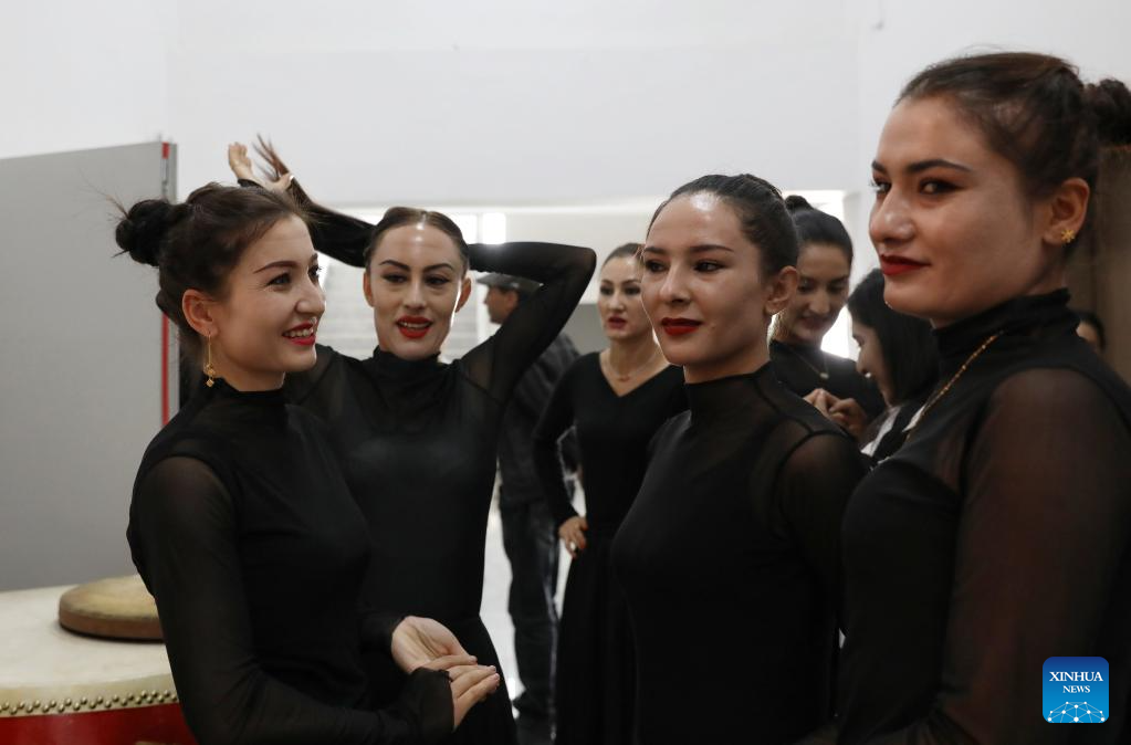 Artists of a local art troupe rehearse a program in Taxkorgan Tajik Autonomous County, northwest China's Xinjiang Uygur Autonomous Region, Sept. 7, 2023. Taxkorgan Tajik Autonomous County has made great efforts in the integration of local culture and tourism in recent years, enriching the cultural life of people and promoting foreign exchanges. The county also carries forward traditional Chinese culture to build cultural tourism festivals, which shows the scenery of the Pamir Plateau and the happy and stable life of the people. (Xinhua/Hu Huhu)