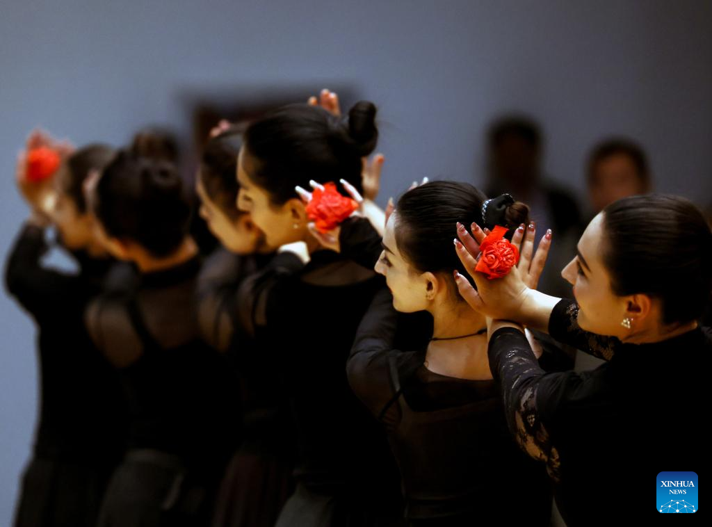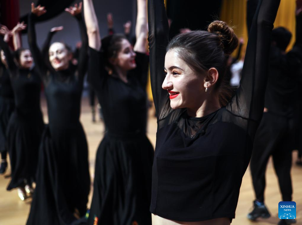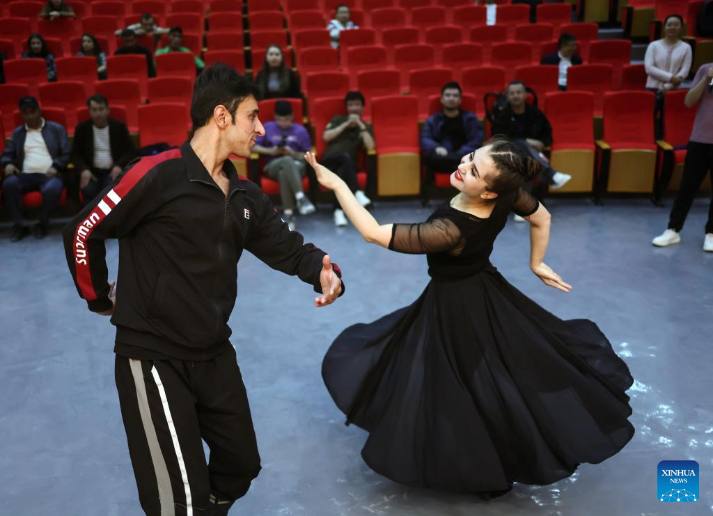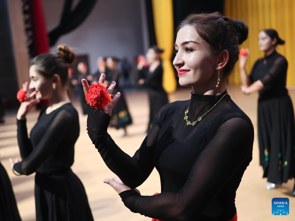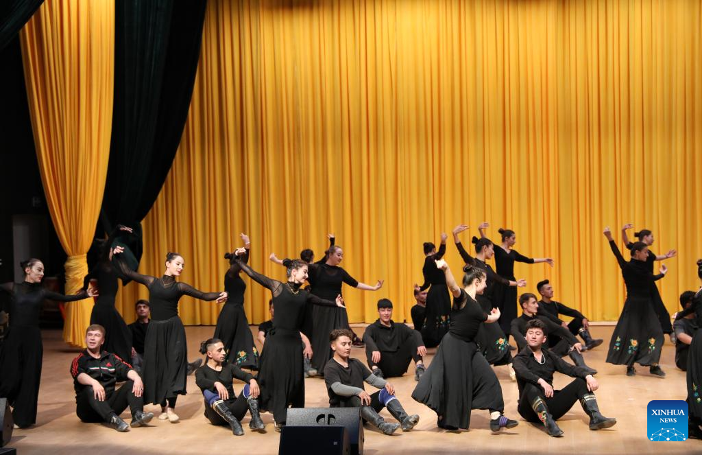 Artists of a local art troupe rehearse a dance in Taxkorgan Tajik Autonomous County, northwest China's Xinjiang Uygur Autonomous Region, Sept. 4, 2023. Taxkorgan Tajik Autonomous County has made great efforts in the integration of local culture and tourism in recent years, enriching the cultural life of people and promoting foreign exchanges. The county also carries forward traditional Chinese culture to build cultural tourism festivals, which shows the scenery of the Pamir Plateau and the happy and stable life of the people. (Xinhua/Lan Hongguang)