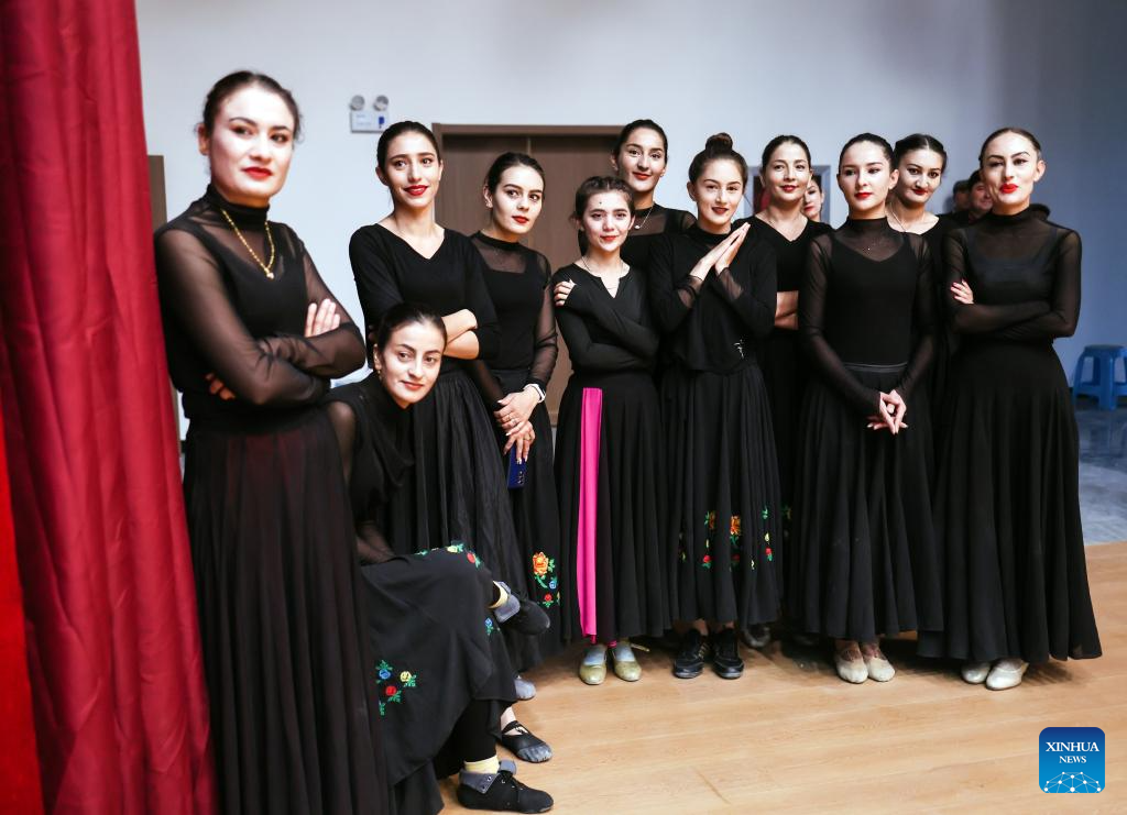 Gulbanur Kurqak (R) and other dancers of a local art troupe rehearse a dance in Taxkorgan Tajik Autonomous County, northwest China's Xinjiang Uygur Autonomous Region, Sept. 4, 2023. Taxkorgan Tajik Autonomous County has made great efforts in the integration of local culture and tourism in recent years, enriching the cultural life of people and promoting foreign exchanges. The county also carries forward traditional Chinese culture to build cultural tourism festivals, which shows the scenery of the Pamir Plateau and the happy and stable life of the people. (Xinhua/Lan Hongguang)
