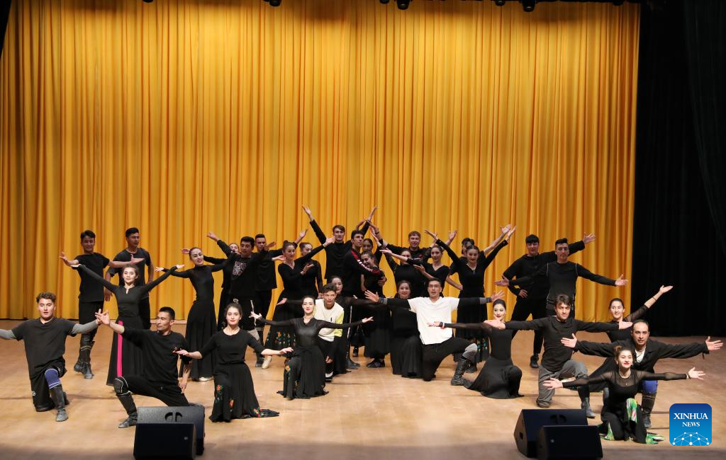 Artists of a local art troupe rehearse a dance in Taxkorgan Tajik Autonomous County, northwest China's Xinjiang Uygur Autonomous Region, Sept. 4, 2023. Taxkorgan Tajik Autonomous County has made great efforts in the integration of local culture and tourism in recent years, enriching the cultural life of people and promoting foreign exchanges. The county also carries forward traditional Chinese culture to build cultural tourism festivals, which shows the scenery of the Pamir Plateau and the happy and stable life of the people. (Xinhua/Wang Fei)