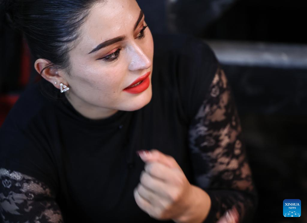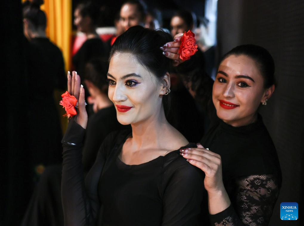 Dancers of a local art troupe wait for a rehearsal at a theater in Taxkorgan Tajik Autonomous County, northwest China's Xinjiang Uygur Autonomous Region, Sept. 4, 2023. Taxkorgan Tajik Autonomous County has made great efforts in the integration of local culture and tourism in recent years, enriching the cultural life of people and promoting foreign exchanges. The county also carries forward traditional Chinese culture to build cultural tourism festivals, which shows the scenery of the Pamir Plateau and the happy and stable life of the people. (Xinhua/Lan Hongguang)