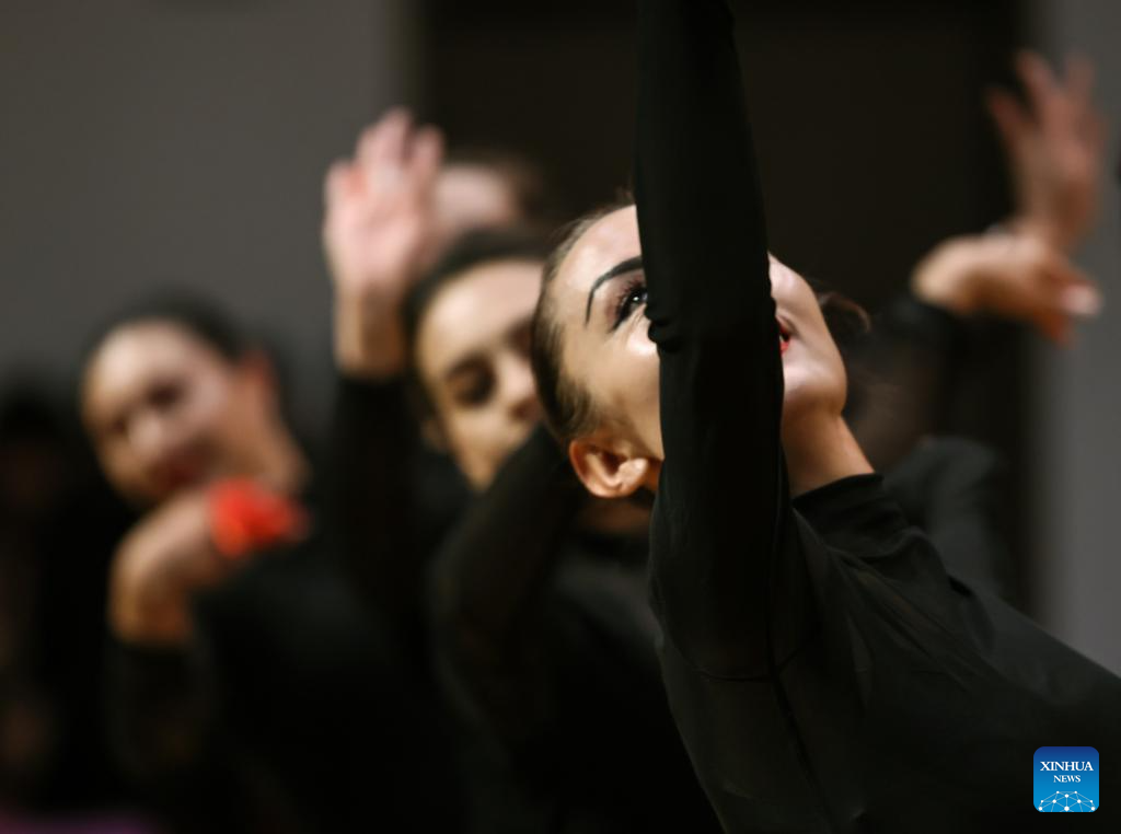 Gulbanur Kurqak (L, Front) and other dancers of a local art troupe rehearse a dance in Taxkorgan Tajik Autonomous County, northwest China's Xinjiang Uygur Autonomous Region, Sept. 4, 2023. Taxkorgan Tajik Autonomous County has made great efforts in the integration of local culture and tourism in recent years, enriching the cultural life of people and promoting foreign exchanges. The county also carries forward traditional Chinese culture to build cultural tourism festivals, which shows the scenery of the Pamir Plateau and the happy and stable life of the people. (Xinhua/Cheng Tingting)
