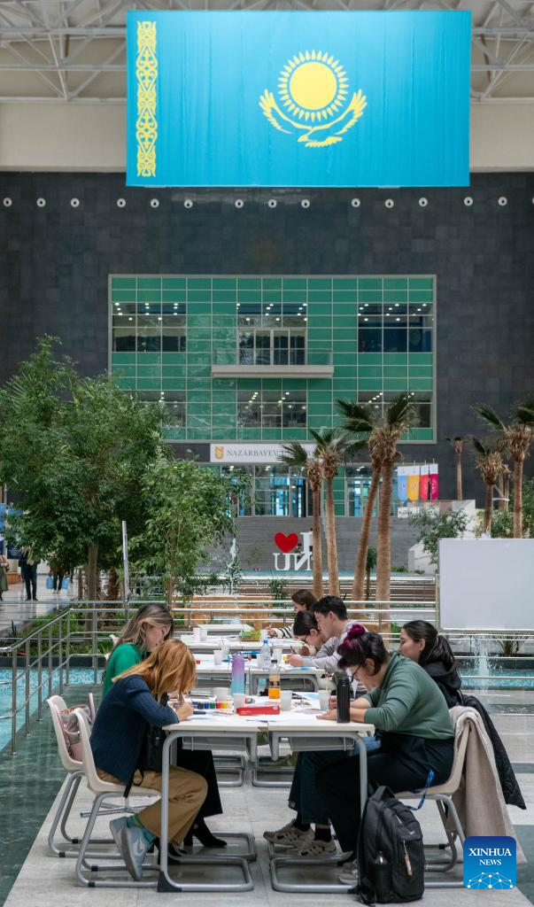 Students study in the campus of Nazarbayev University in Astana, Kazakhstan, Sept. 6, 2023. Nazarbayev University is one of the most influential universities in Kazakhstan. (Xinhua/Wu Huiwo)