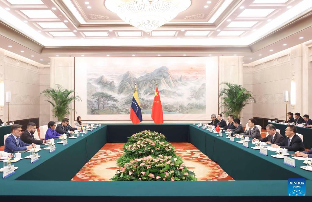 Chinese Vice President Han Zheng meets with Venezuelan Vice President Delcy Eloina Rodriguez Gomez in Beijing, capital of China, Sept. 8, 2023. (Xinhua/Liu Weibing)