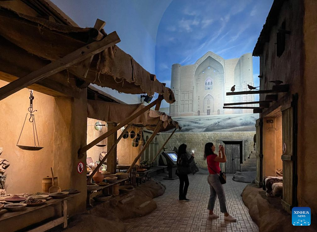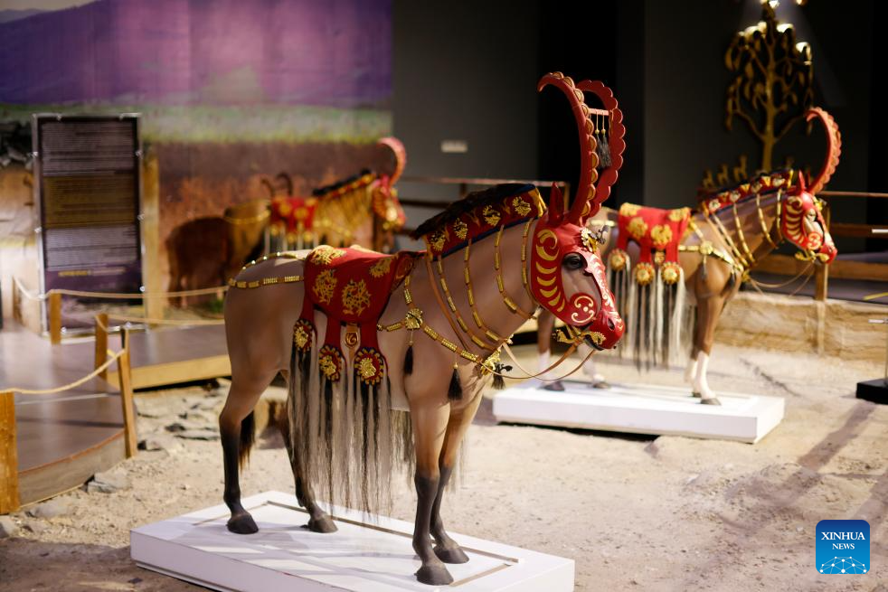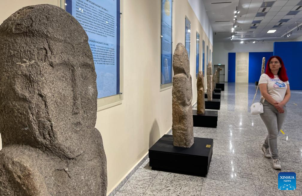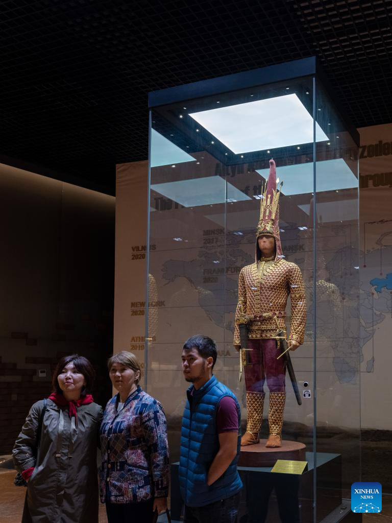 This photo taken on Sept. 8, 2023 shows an exhibit displayed at the National Museum of the Republic of Kazakhstan in Astana, Kazakhstan. The National Museum of the Republic of Kazakhstan established in July 2014 is one of the largest museums in central Asia. It contains seven halls with a total exhibition area of 14,000 square meters. (Xinhua/Wu Huiwo)