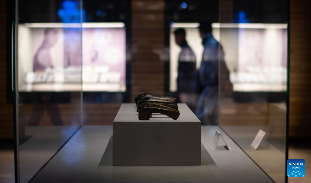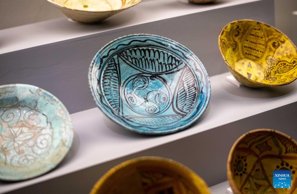 This photo taken on Sept. 8, 2023 shows part of collections displayed at the National Museum of the Republic of Kazakhstan in Astana, Kazakhstan. The National Museum of the Republic of Kazakhstan established in July 2014 is one of the largest museums in central Asia. It contains seven halls with a total exhibition area of 14,000 square meters. (Xinhua/Li Muzi)