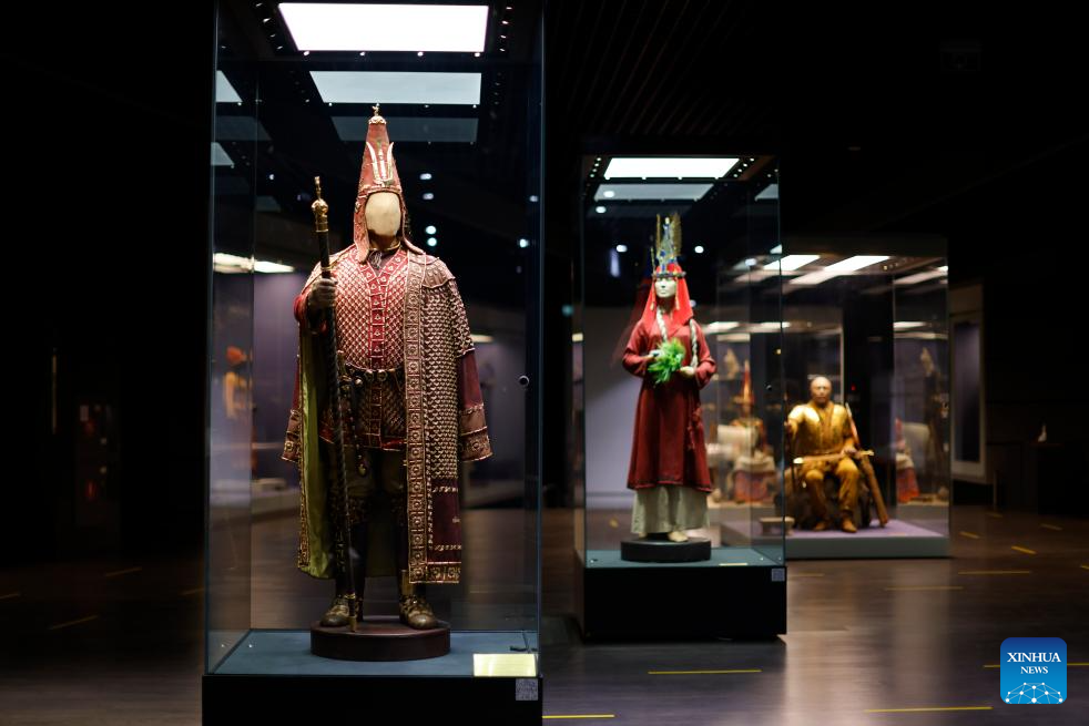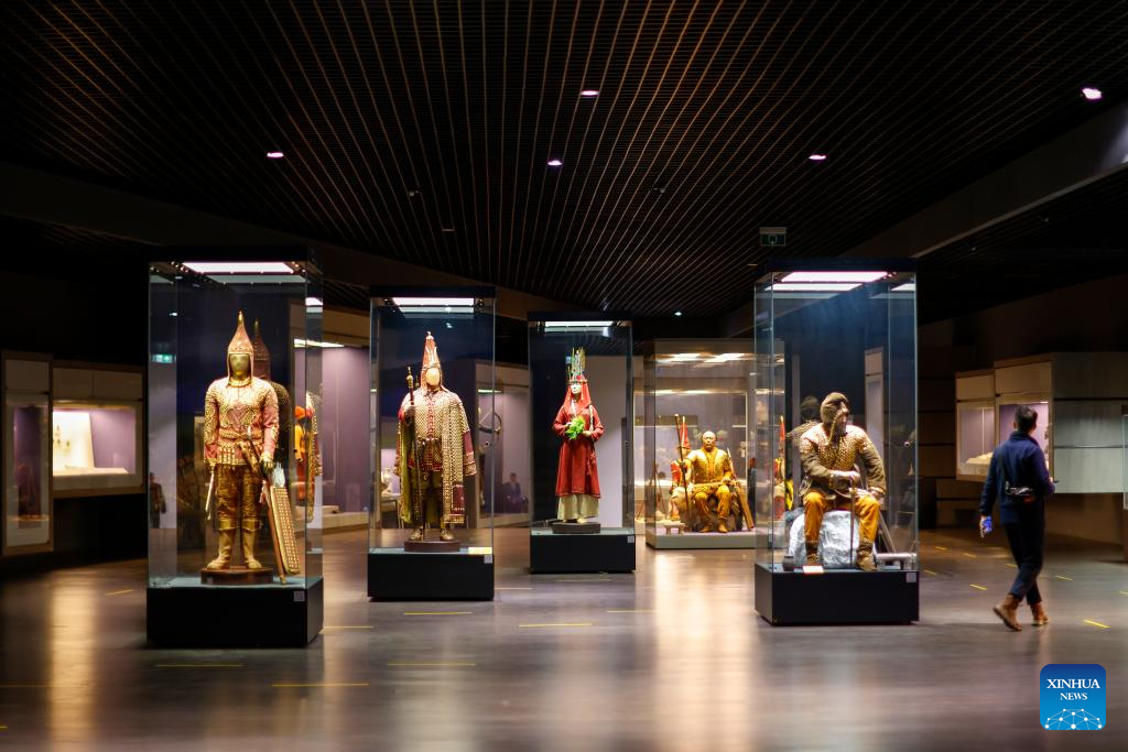 This photo taken on Sept. 8, 2023 shows part of collections displayed at the National Museum of the Republic of Kazakhstan in Astana, Kazakhstan. The National Museum of the Republic of Kazakhstan established in July 2014 is one of the largest museums in central Asia. It contains seven halls with a total exhibition area of 14,000 square meters. (Xinhua/Wu Huiwo)