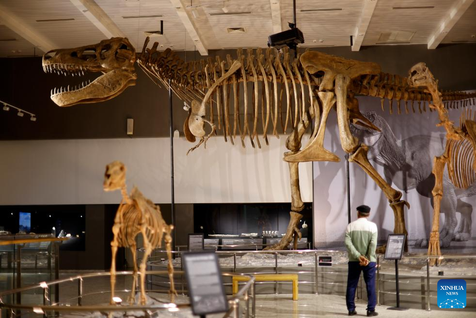 A man visits the National Museum of the Republic of Kazakhstan in Astana, Kazakhstan, Sept. 8, 2023. The National Museum of the Republic of Kazakhstan established in July 2014 is one of the largest museums in central Asia. It contains seven halls with a total exhibition area of 14,000 square meters. (Xinhua/Li Muzi)