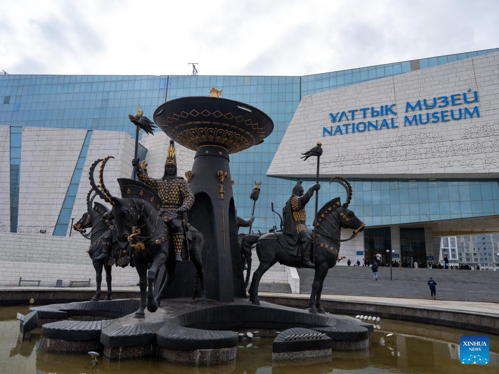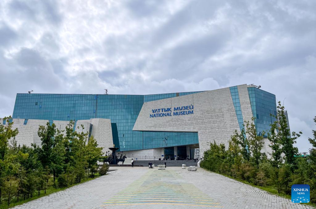 This photo taken on Sept. 8, 2023 shows an exterior view of the National Museum of the Republic of Kazakhstan in Astana, Kazakhstan. The National Museum of the Republic of Kazakhstan established in July 2014 is one of the largest museums in central Asia. It contains seven halls with a total exhibition area of 14,000 square meters. (Xinhua/Li Muzi)