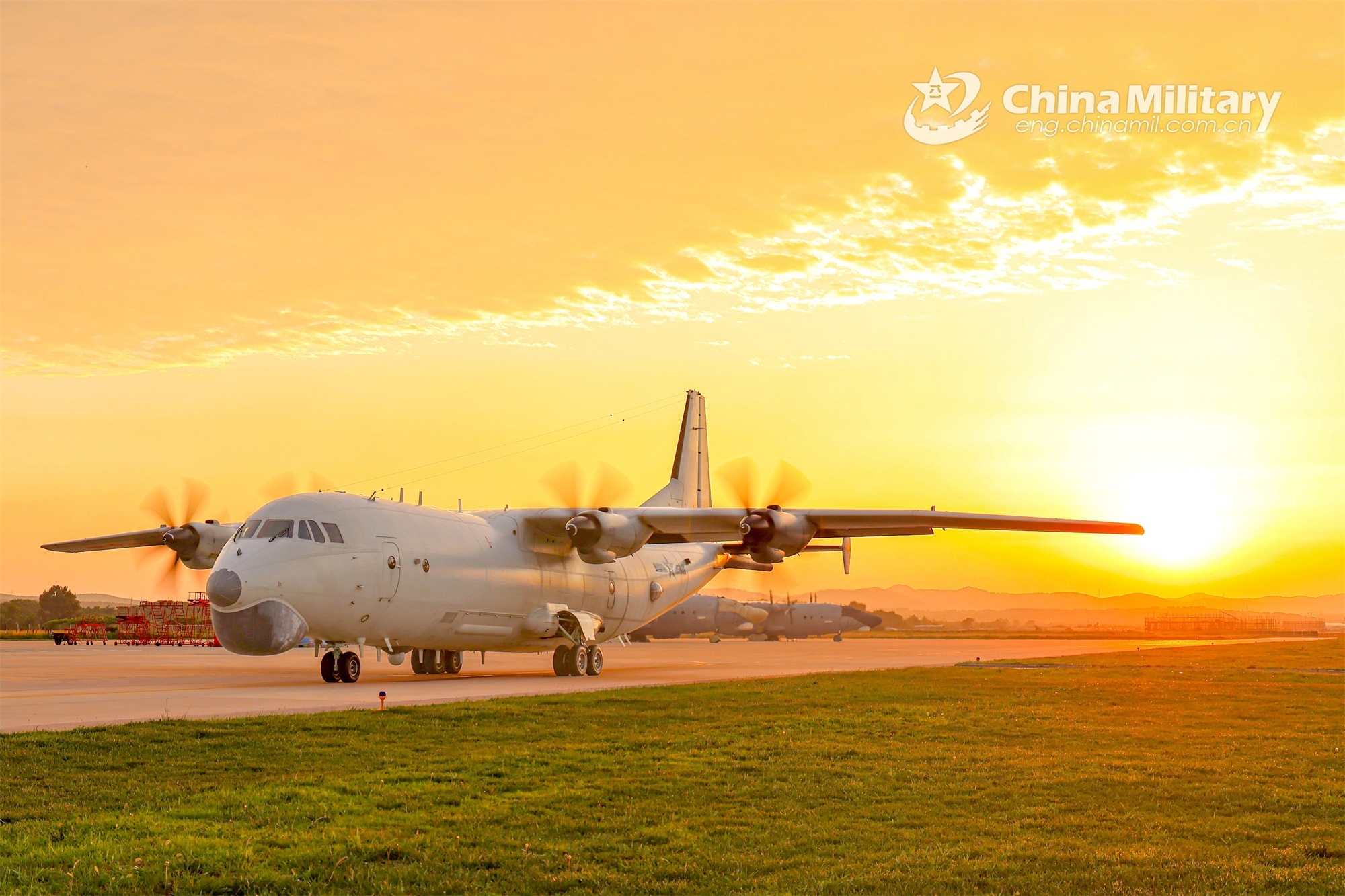 An anti-submarine aircraft attached to a naval aviation unit under the PLA Northern Theater Command speeds up before taking off during a multi-subject training exercise in August 15, 2023. (eng.chinamil.com.cn/Photo by Bu Lingbin)