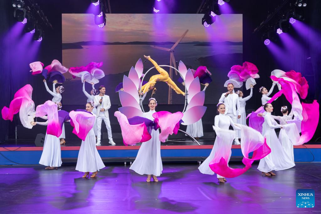 A performance is staged at an exhibition area of the 8th Eastern Economic Forum in Vladivostok, Russia, Sept. 10, 2023. The Russian Far East city of Vladivostok welcomed thousands of participants for the 8th Eastern Economic Forum (EEF) on Sunday to promote economic and cultural exchanges among the regions of the Asia-Pacific. The four-day event is organized by the Roscongress Foundation. (Photo by Guo Feizhou/Xinhua)