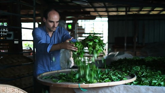 William, a French man, processes tea leaves in southwest China's Yunnan Province. (Photo courtesy of the interviewee)