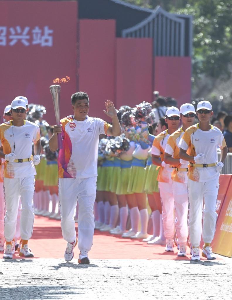HANGZHOU, Sept. 11 (Xinhua) -- A 9.7-km torch relay featured historical attractions and modern landmarks of Shaoxing in East China's Zhejiang Province, marking the fourth leg of its campaign for the Hangzhou Asian Games on Monday.