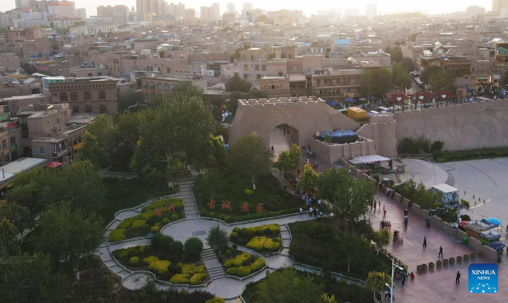 This aerial photo taken on Sept. 7, 2023 shows the ancient city of Kashgar scenic area in Kashgar, northwest China's Xinjiang Uygur Autonomous Region. (Xinhua/Jin Haoyuan)