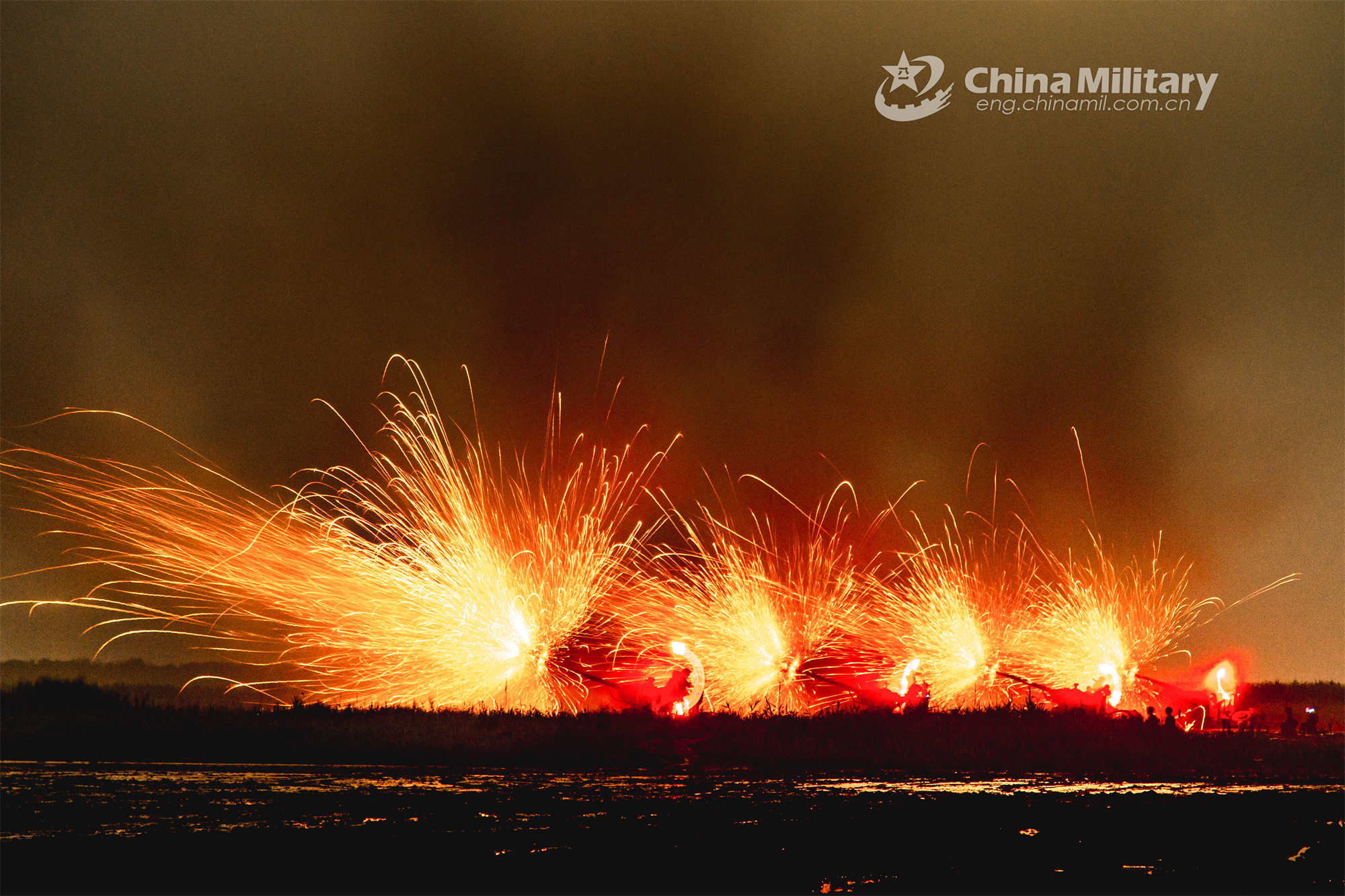 A battery of anti-aircraft guns attached to an air defense brigade under the PLA 73rd Group Army opens fire at mock target. Recently, the brigade organized a live-fire air-defense exercise to strengthen the troop's combat capability. (eng.chinamil.com.cn/Photo by Zhang Jie)