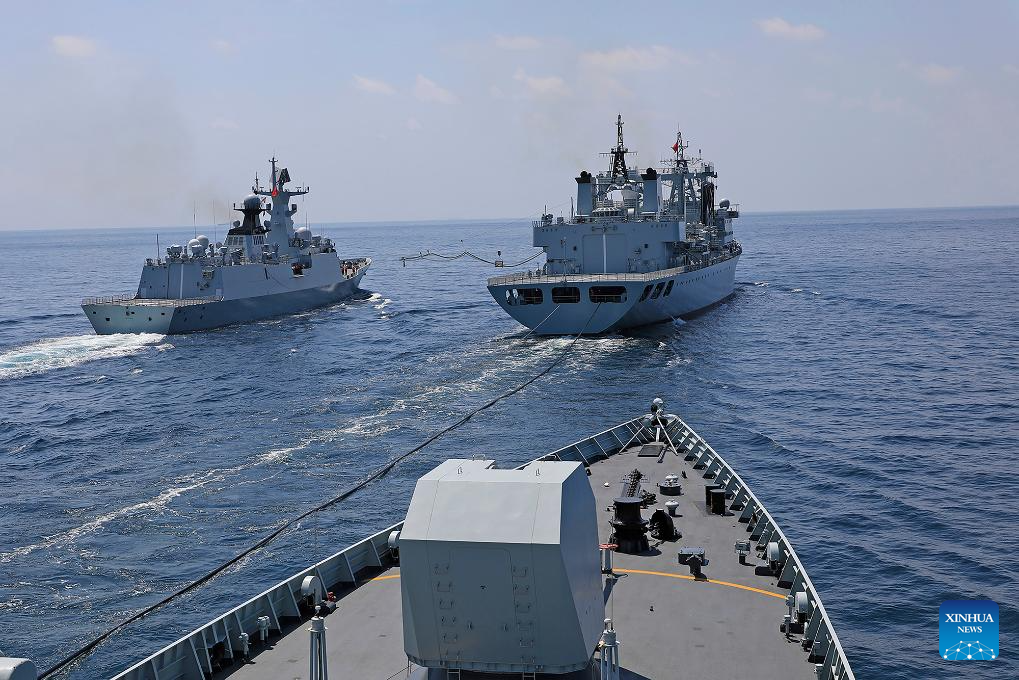 The 45th fleet of the Chinese People's Liberation Army (PLA) Navy for an escort mission in the Gulf of Aden and the waters off Somalia carries out training on Aug. 25, 2023. (Photo by Wang Yuanfang/Xinhua)