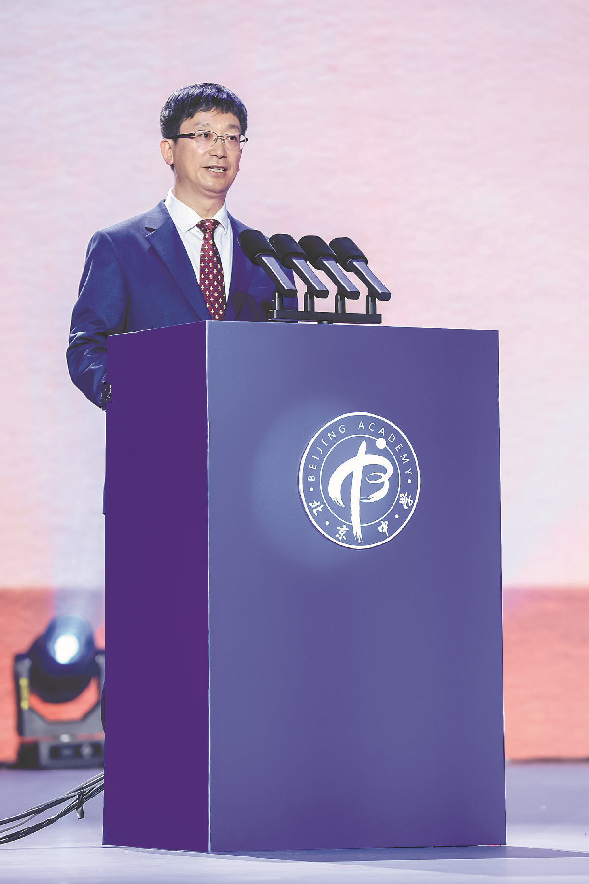Xia Qingfeng, principal of the academy, delivers a work report about the school's development. CHINA DAILY