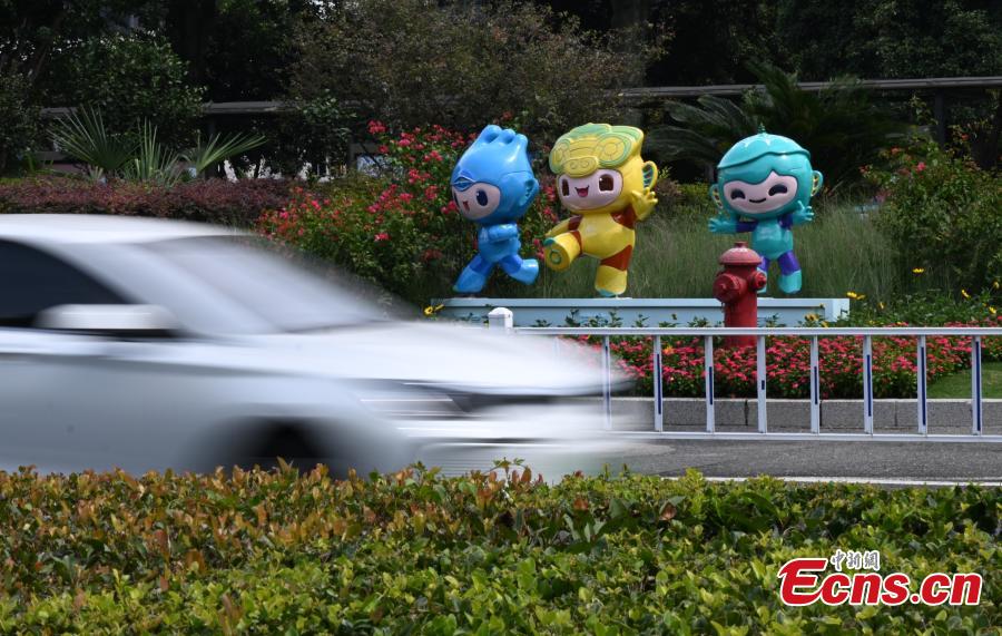 Mascots of the 19th Asian Games are set up in Hangzhou, east China's Zhejiang Province, on Sept. 11, 2023. (Photo: China News Service/Wang Gang)