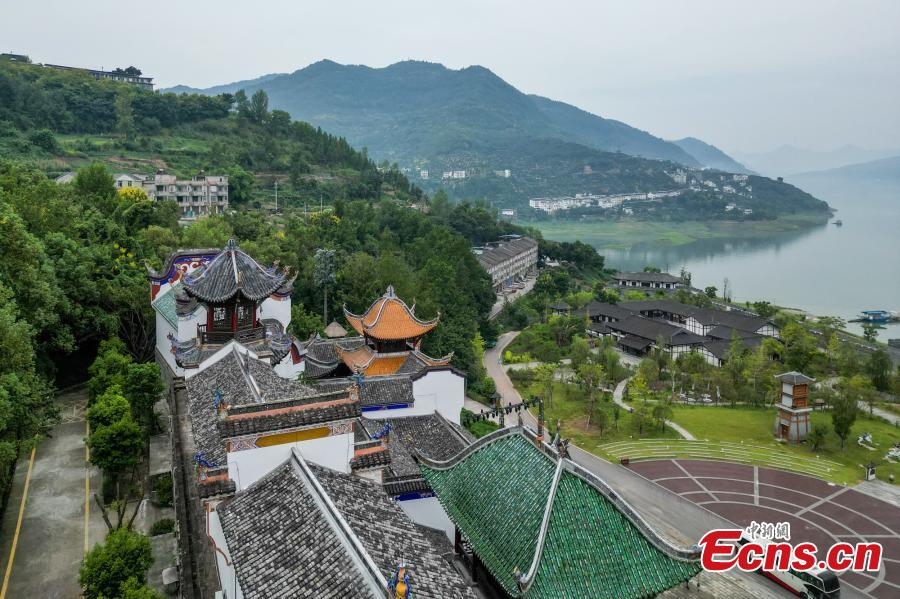 Aerial view of the Zhang Fei Temple in Panshi township, Chongqing. (Photo: China News Network/He Penglei)