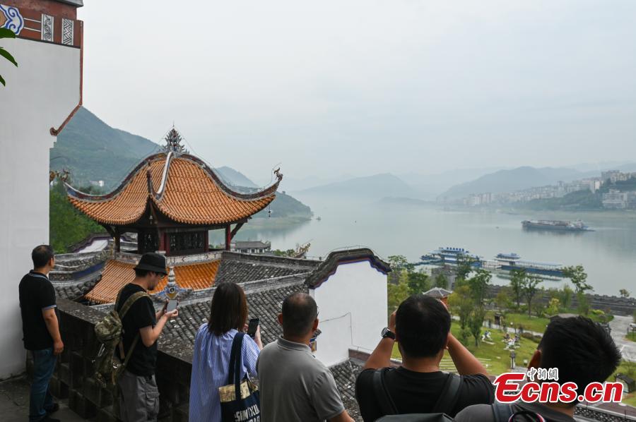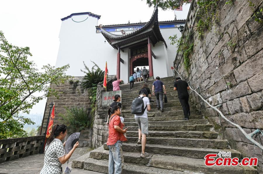 Tourists visit the Zhang Fei Temple in Panshi township, Chongqing. (Photo: China News Network/He Penglei)