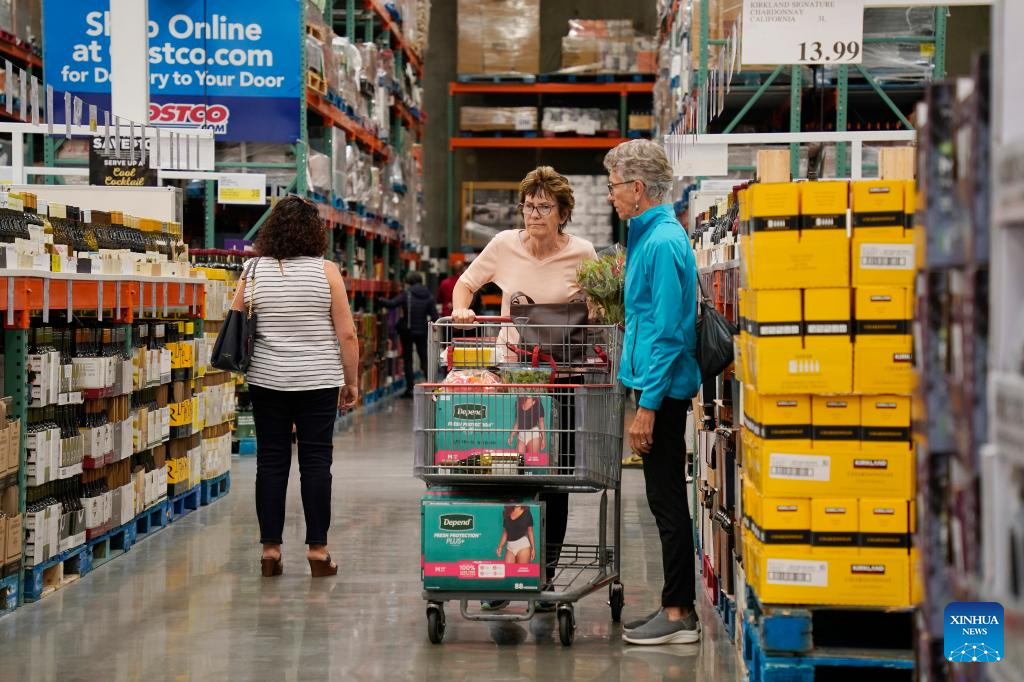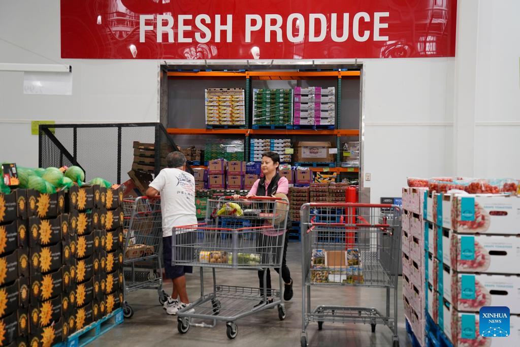 Customers shop at a supermarket in Foster City, California, the United States, Sept. 13, 2023. The U.S. Department of Labor reported Wednesday that U.S. consumer price index (CPI), a key gauge of inflation, rose 0.6 percent in August, its biggest monthly gain in 2023; and 3.7 percent from a year ago. (Photo by Li Jianguo/Xinhua)