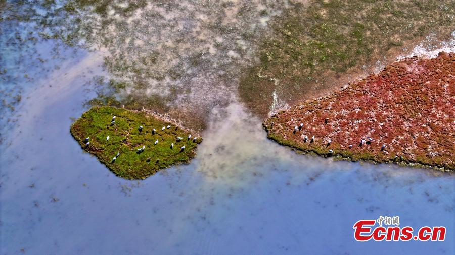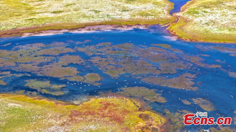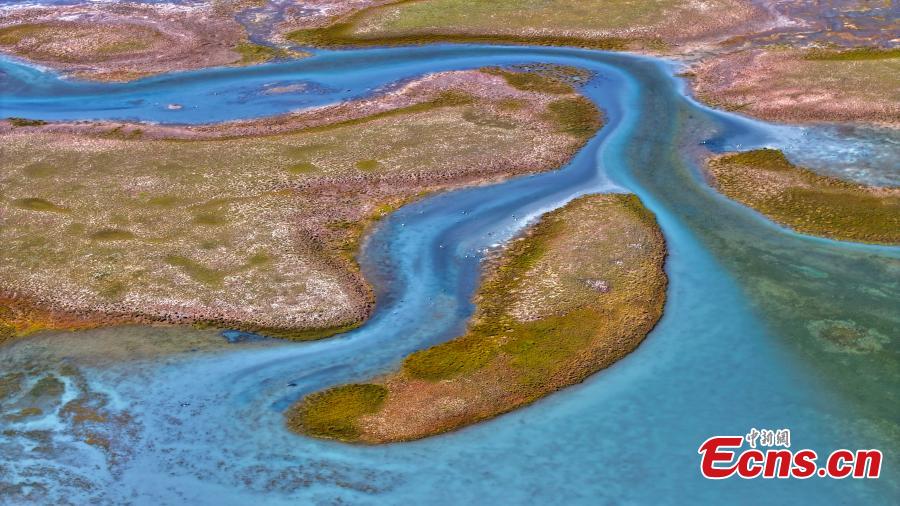 Aerial view of Bande Lake on the Tuotuo River, the headwaters of the Yangtze River in northwest China's Qinghai Province, Sept. 13, 2023. (Photo/China News Service)
