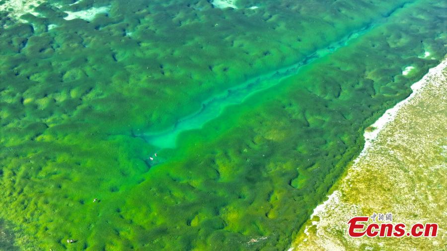 The 4.5-square kilometer lake is home to a large number of bar-headed geese, one of the world's highest-flying birds in Qinghai.