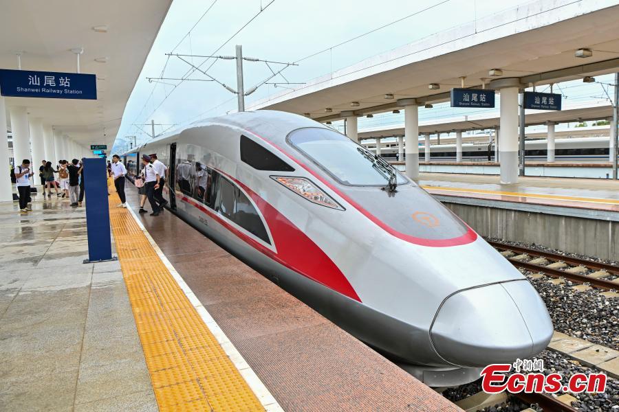 A high-speed train arrives at Shanwei Railway Station in south China's Guangdong Province, Sept. 13, 2023. (Photo: China News Service/Chen Jimin)