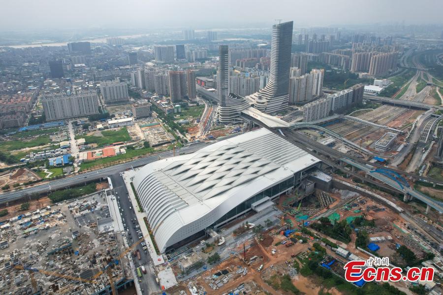 Aerial view of Xintang railway station in Guangzhou, south China's Guangdong Province, Sept. 13, 2023. (Photo: China News Service/Chen Jimin)
