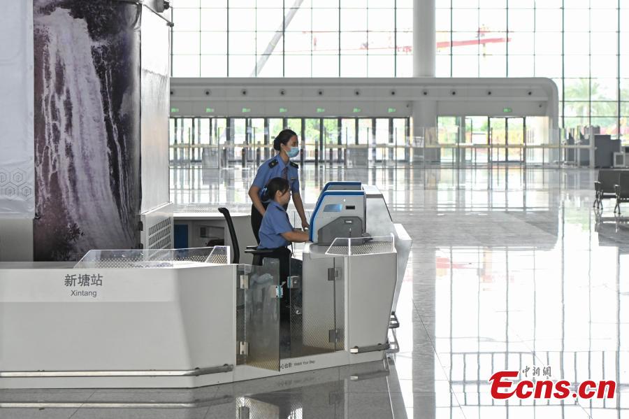 Staff members work at Xintang railway station in south China's Guangdong Province, Sept. 13, 2023. (Photo: China News Service/Chen Jimin)