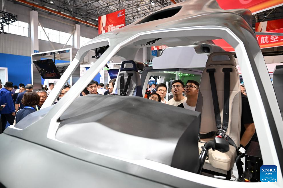 People visit the 6th China Helicopter Exposition in north China's Tianjin Municipality, Sept. 14, 2023. (Xinhua/Zhao Zishuo)