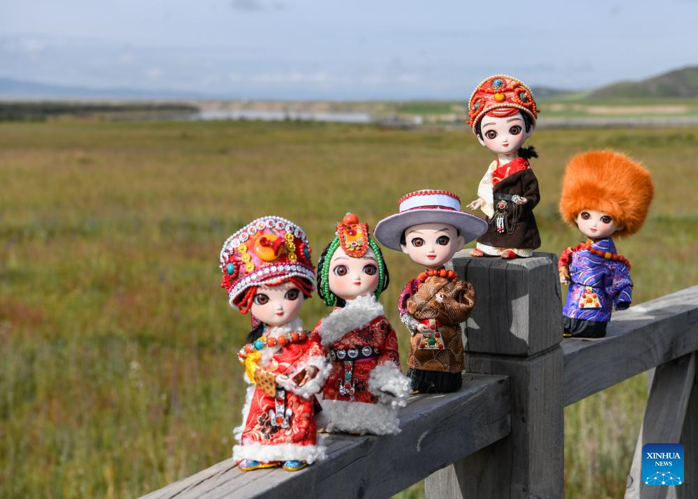 This photo taken on Aug. 24, 2023 shows "Lucky Dolls" in Baihe community of Tangke Town in Ruoergai County, southwest China's Sichuan Province. (Xinhua/Wang Yijie)