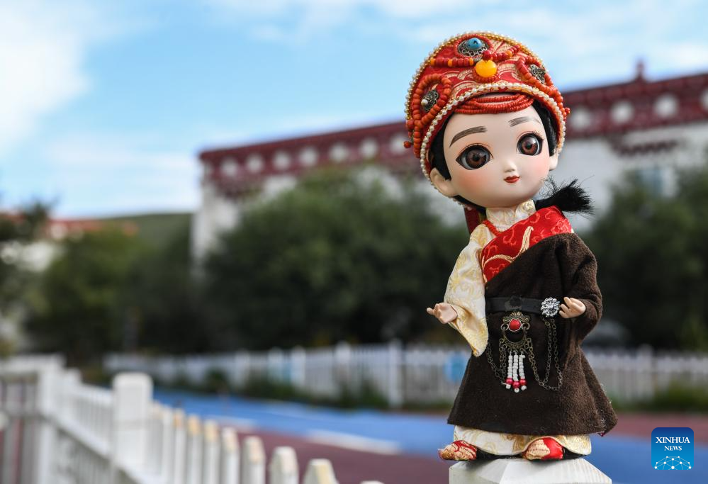 This photo taken on Aug. 24, 2023 shows a "Lucky Doll" in Baihe community of Tangke Town in Ruoergai County, southwest China's Sichuan Province. (Xinhua/Wang Xi)