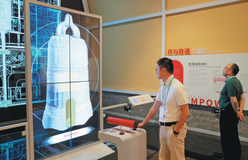 A holographic display fascinates visitors at a digital interaction exhibition during the opening of the 2023 Beijing Cultural Forum at the Drum Tower in Beijing on Thursday. WANG ZHUANGFEI/CHINA DAILY