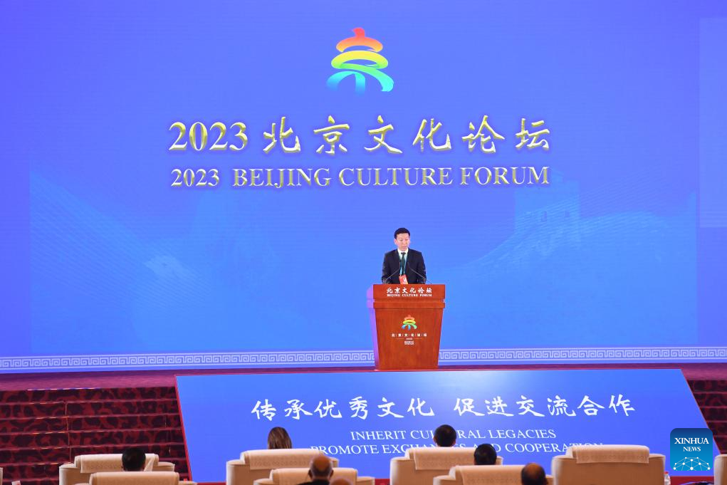 Guests attend the 2023 Beijing Culture Forum in Beijing, capital of China, Sept. 14, 2023. The 2023 Beijing Culture Forum opened on Thursday in Beijing. (Xinhua/Ju Huanzong)