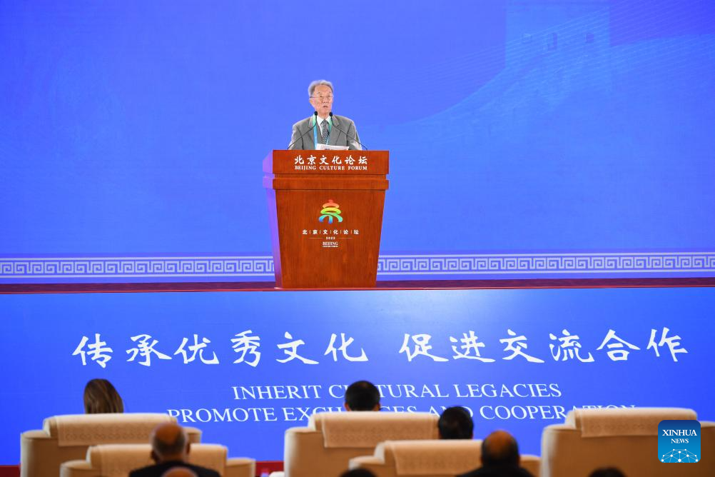 Christos Dimas, government representative and deputy minister of culture of Greece, delivers a speech at the 2023 Beijing Culture Forum in Beijing, capital of China, Sept. 14, 2023. The 2023 Beijing Culture Forum opened on Thursday in Beijing. (Xinhua/Ju Huanzong)