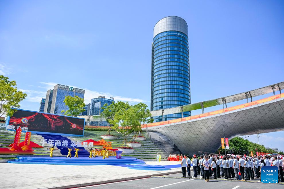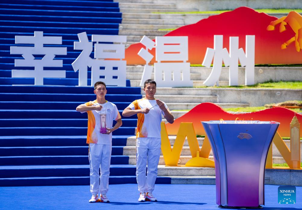 Photo shows the flame retrieval ceremony of the torch relay of the 19th Asian Games in Wenzhou, east China's Zhejiang Province, Sept. 15, 2023. (Xinhua/Sun Fei)